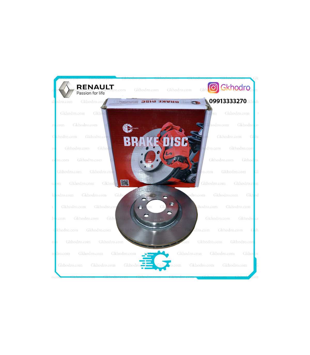 دیسک چرخ جلو ال 90 برند GAPCO با کیفیت بالا و مطابق استاندارد رنو. مقاوم در برابر حرارت و فشار، مناسب رانندگی شهری و جادهای.
