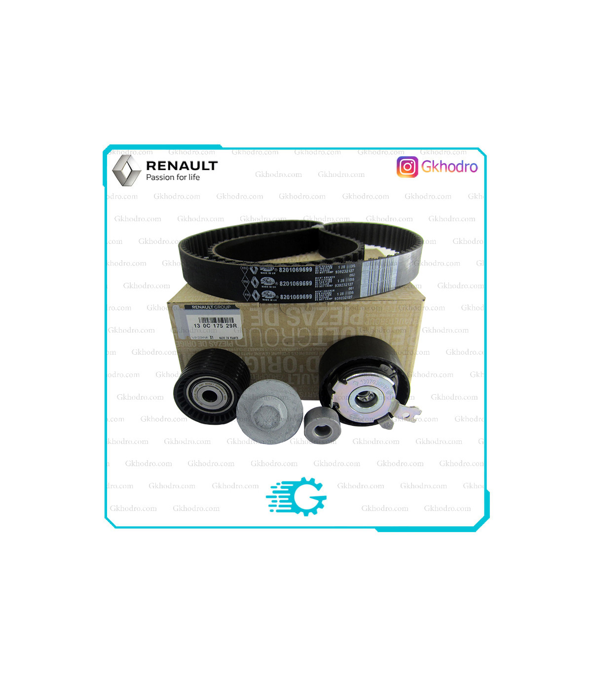 در کیت تسمه تایم ال 90 اصلی رنو یک تسمه تایم وجود دارد که یک قطعه ای از موتور احتراق داخلی خودرو می باشد که به خوبی میل لنگ را به میل سوپاپ ها متصل می کند. در واقع تسمه تایم حرکات میل لنگ و میل سوپاپ را هماهنگ کرده و با زمان بندی مناسب باز و بسته شدن دریچه سوپاپ ها را به بهترین نحو کنترل می کند. برای عملکرد مناسب این قطعه بهتر است به صورت دوره ای وضعیت این قطعه را توسط متخصصان و کارشناسان نمایندگی های معتبر بررسی نمایید. عمر مفید تسمه تایم برای خانواده رنو ساندرو، ال ۹۰ و رنو ساندرو استپ وی، مگان 1600 در شرایط معمولی معادل ۶۰ هزار کیلومتر تخمین زده شده است. در صورت عدم تعویض به موقع تسمه تایم ممکن است خسارات سنگینی به موتور خودرو ال ۹۰ شما وارد شود. پارگی تسمه تایم در خودروهای مختلف پیامدهای متفاوتی را دارد. در برخی خودروها خراب شدن و پارگی تسمه تایم موجب کج شدن سوپاپ ها و در برخی دیگر باعث خاموش شدن ماشین خواهد شد.