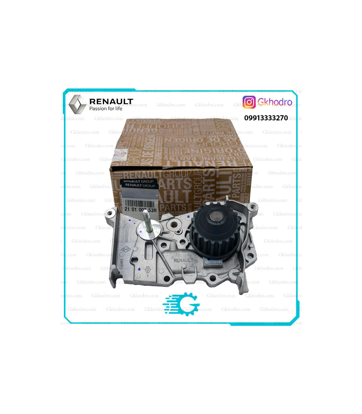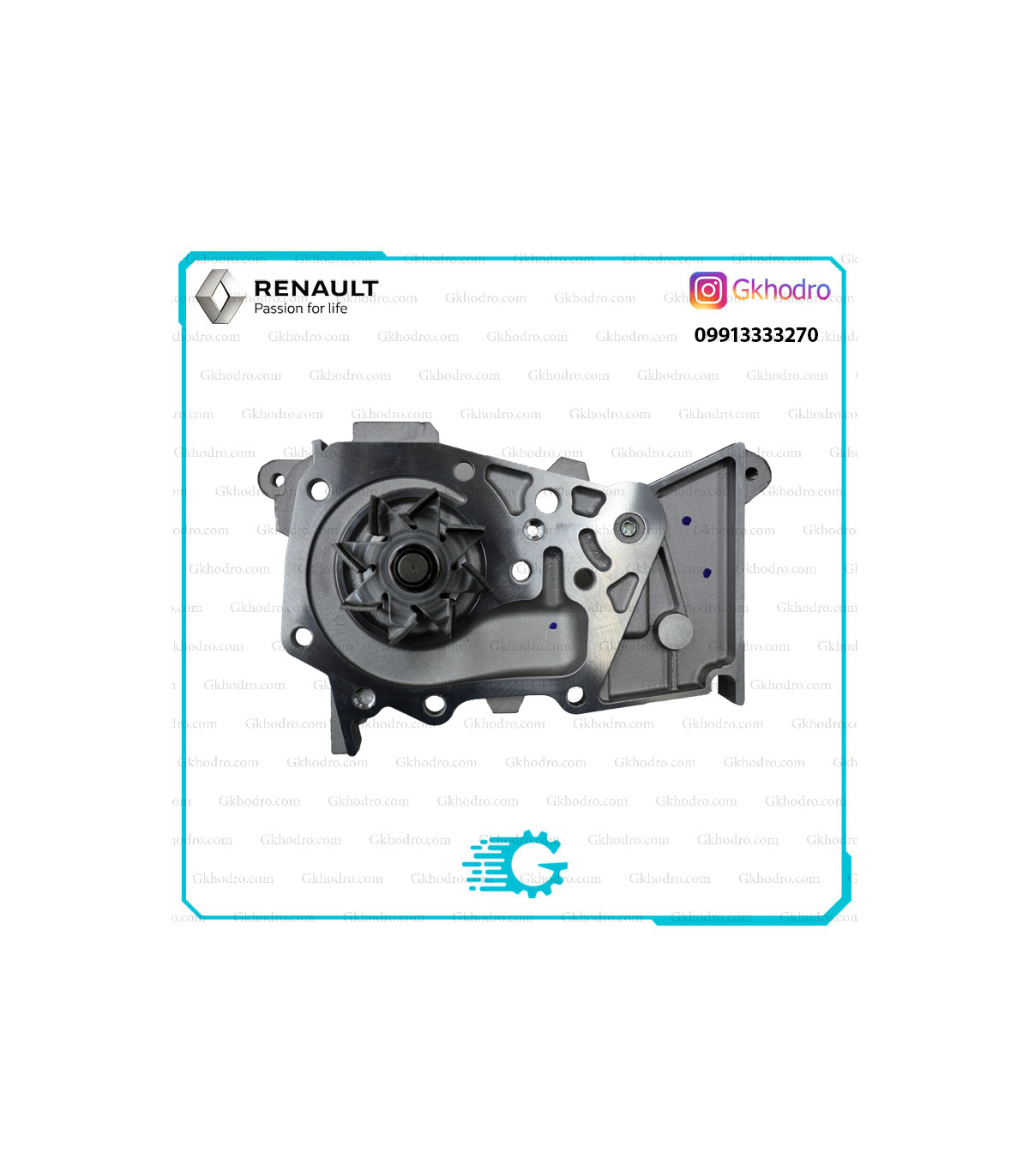 واتر پمپ اصلی ساندرو با کد 210100753R، ساخت کره، مناسب موتورهای K4M و K7M. تضمین گردش یکنواخت مایع خنککننده و جلوگیری از داغ کردن موتور.