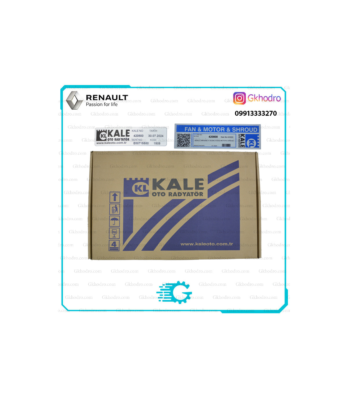 مجموعه فن رادیاتور مگان برند KALE محصولی با کیفیت OEM و ساخت کشور ترکیه است که شامل موتور فن، پروانه و قاب فن می‌باشد. این مجموعه نقش حیاتی در سیستم خنک‌کننده موتور دارد و با عملکرد دقیق خود، از داغ شدن بیش از حد موتور جلوگیری می‌کند.