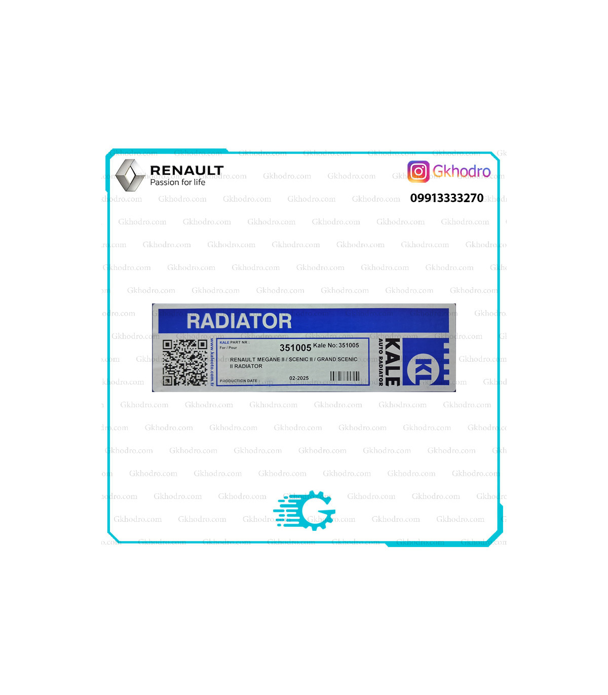 رادیاتور آب مگان برند KALE ساخت ترکیه با کد 351005، تضمینکننده خنککاری مؤثر موتور و جلوگیری از داغی بیش از حد در شرایط رانندگی سنگین.